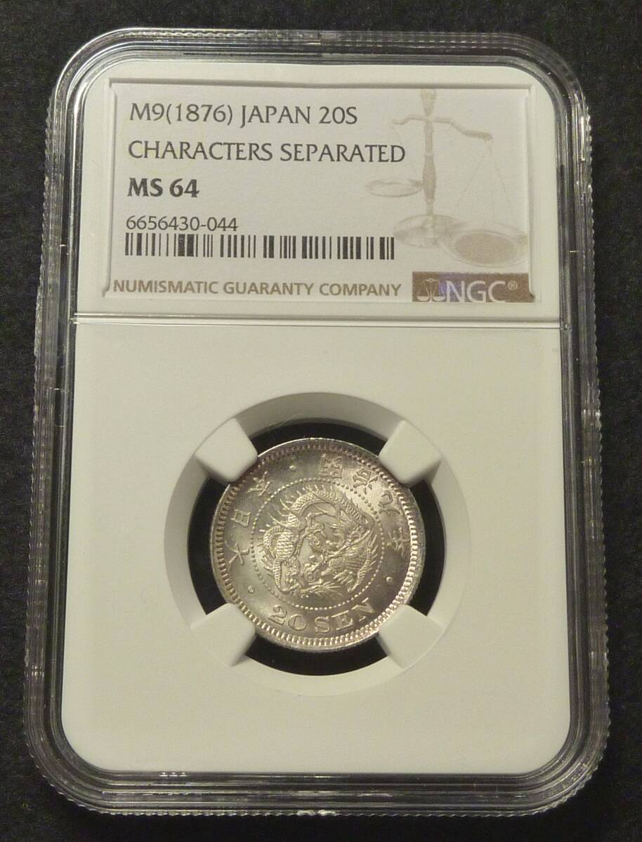 - ☆★竜20銭銀貨 明治9年 NGC MS64★☆