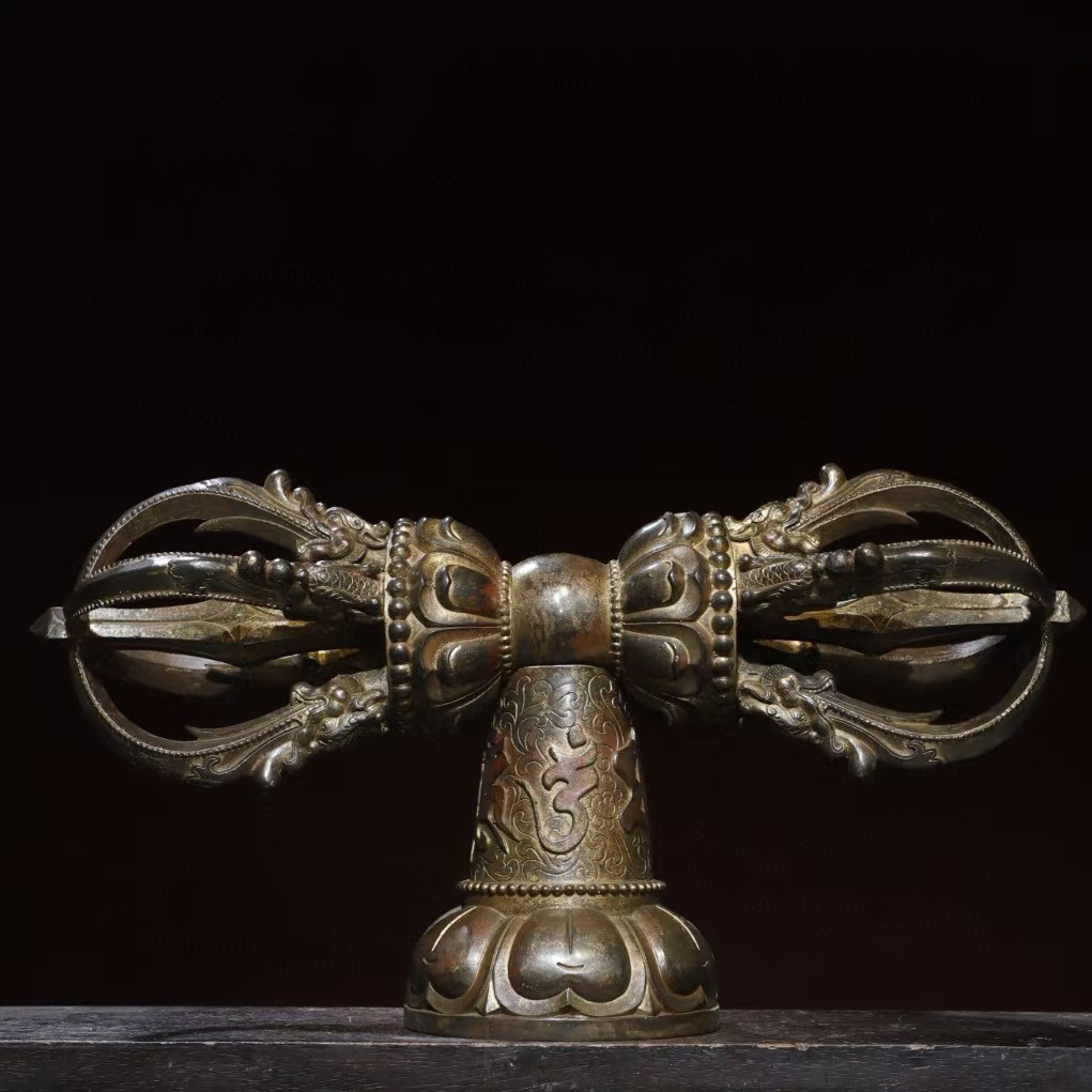 - 仏像 清代 旧蔵 大判52 cm 古銅 泥金【五股金剛杵】法器 銅製 銅琉金 仏教 唐物 收蔵品 時代物 古美術 細密造 古置物 希少珍品 供養品 5.31