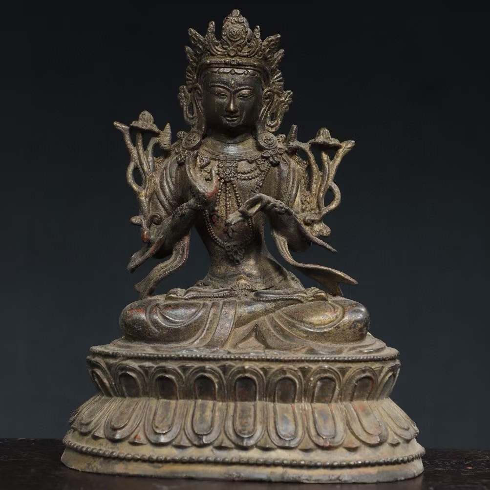 > 仏像 清代 旧蔵 古銅 拓金【蔵伝度母】仏像 造像 銅製 銅琉金 仏教 唐物 收蔵品 時代物 古美術 細密造 古置物 希少珍品 供養品 5.31