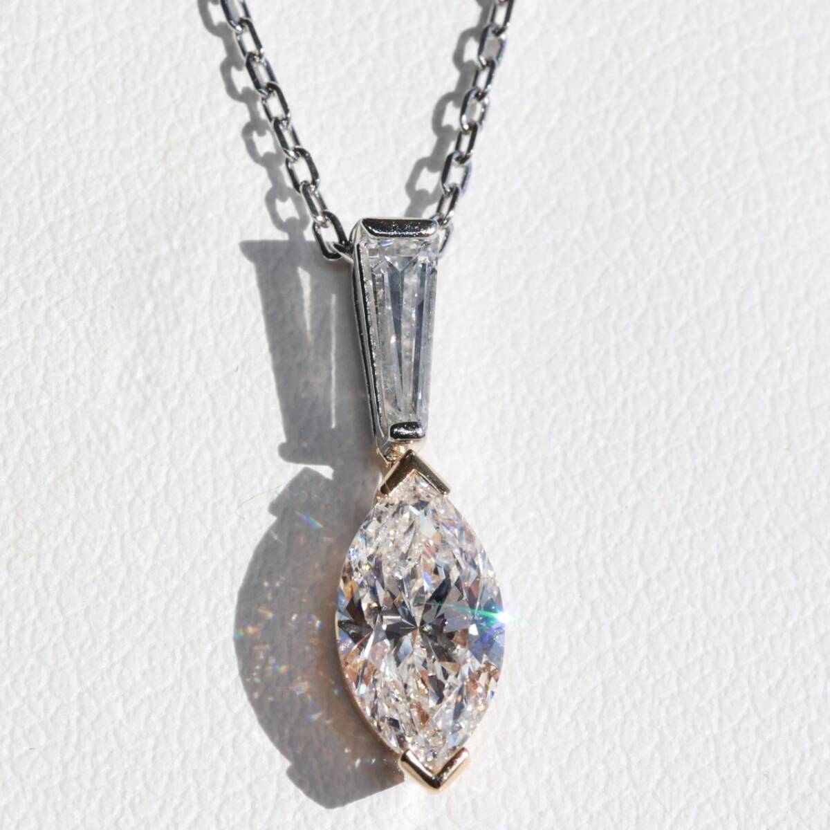 - K18 Pt フォーエバーマーク ダイヤモンド 0.81ct 0.16ct ネックレス マーキース マーキス 0.8ct 一粒ダイヤモンド