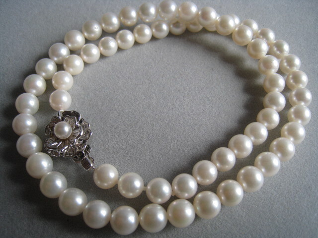 - [SAMU]綺麗!照り天然あこや真珠6.5mm~6.8mm 長さ43cmネックレス 美品!