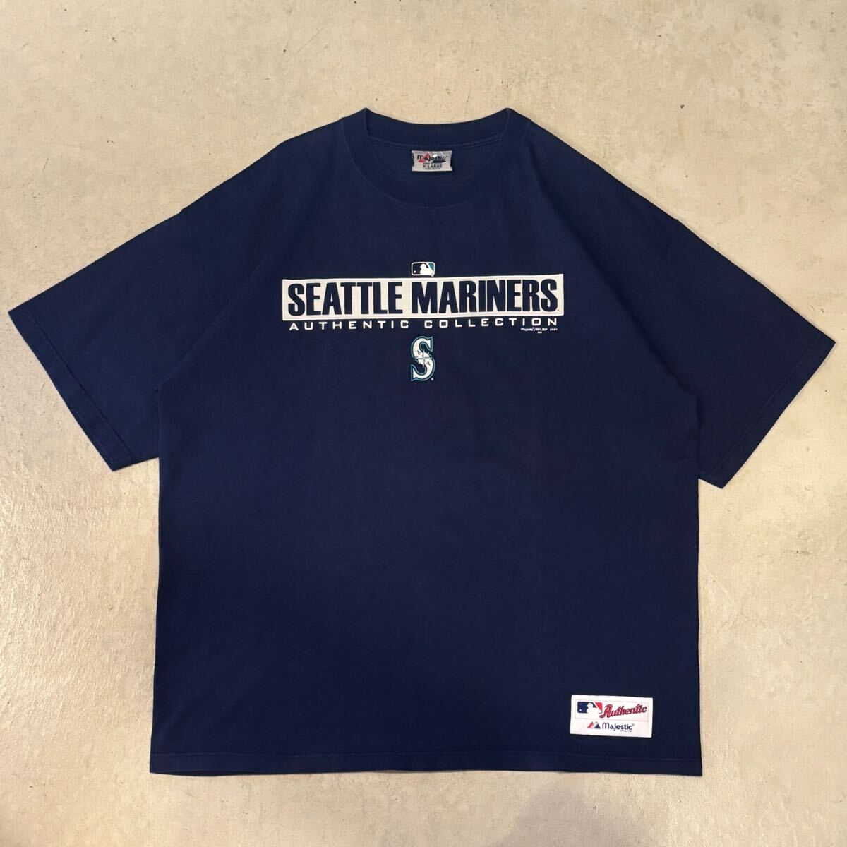 > 【00s】Majestic マジェスティック 半袖 Tシャツ Tee メンズ XL 紺/NAVY MLB シアトルマリナーズ チーム プリント コットン vintage 古着