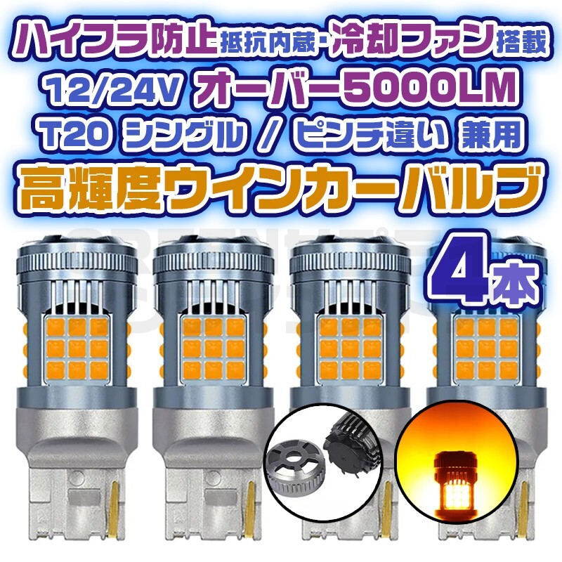 - LED ウインカー バルブ 4個 T20 ピンチ部違い アンバー 12V 24V
