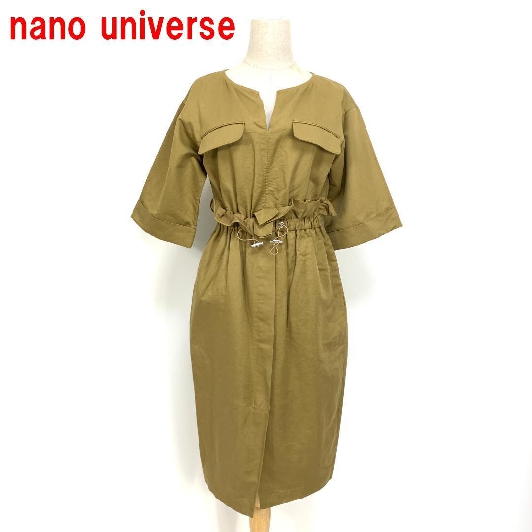 - A6020 ナノユニバース 半袖 ロングワンピース nano universe コットン オーバーサイズリネン 綿 ベージュ 36
