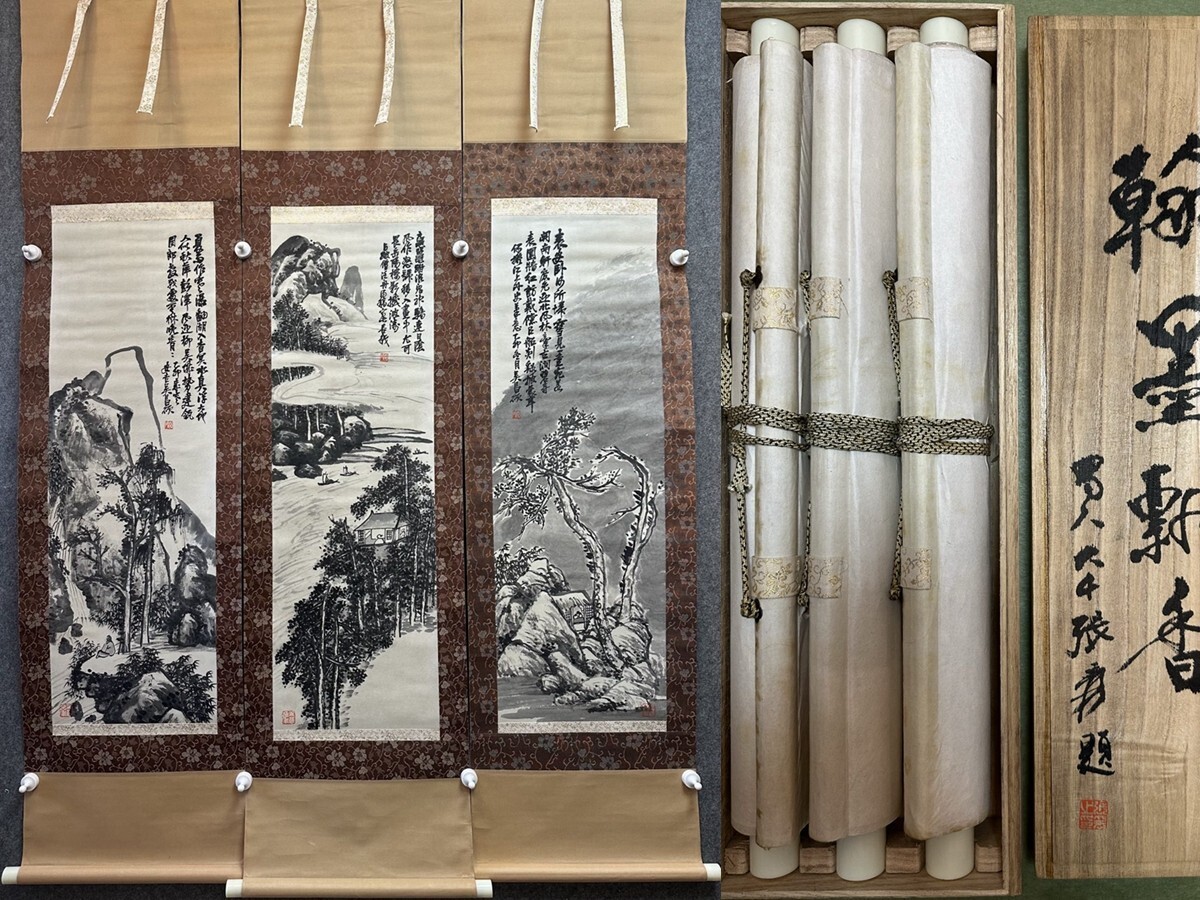 - 中国書画「清 呉昌碩 山水図三條屏」肉筆紙本 掛け軸 墨寶妙品 書画立軸 巻き物 古美術 旧蔵出