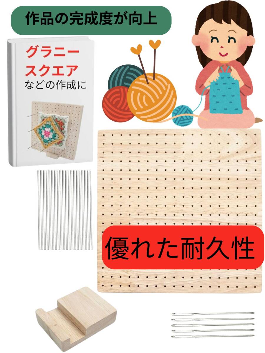 - 編み物 ブロッキング ボード セット グラニースクエア 木製 道具 ニードル かぎ針 かぎ編み 裁縫 23.5X23.5cm (1枚)