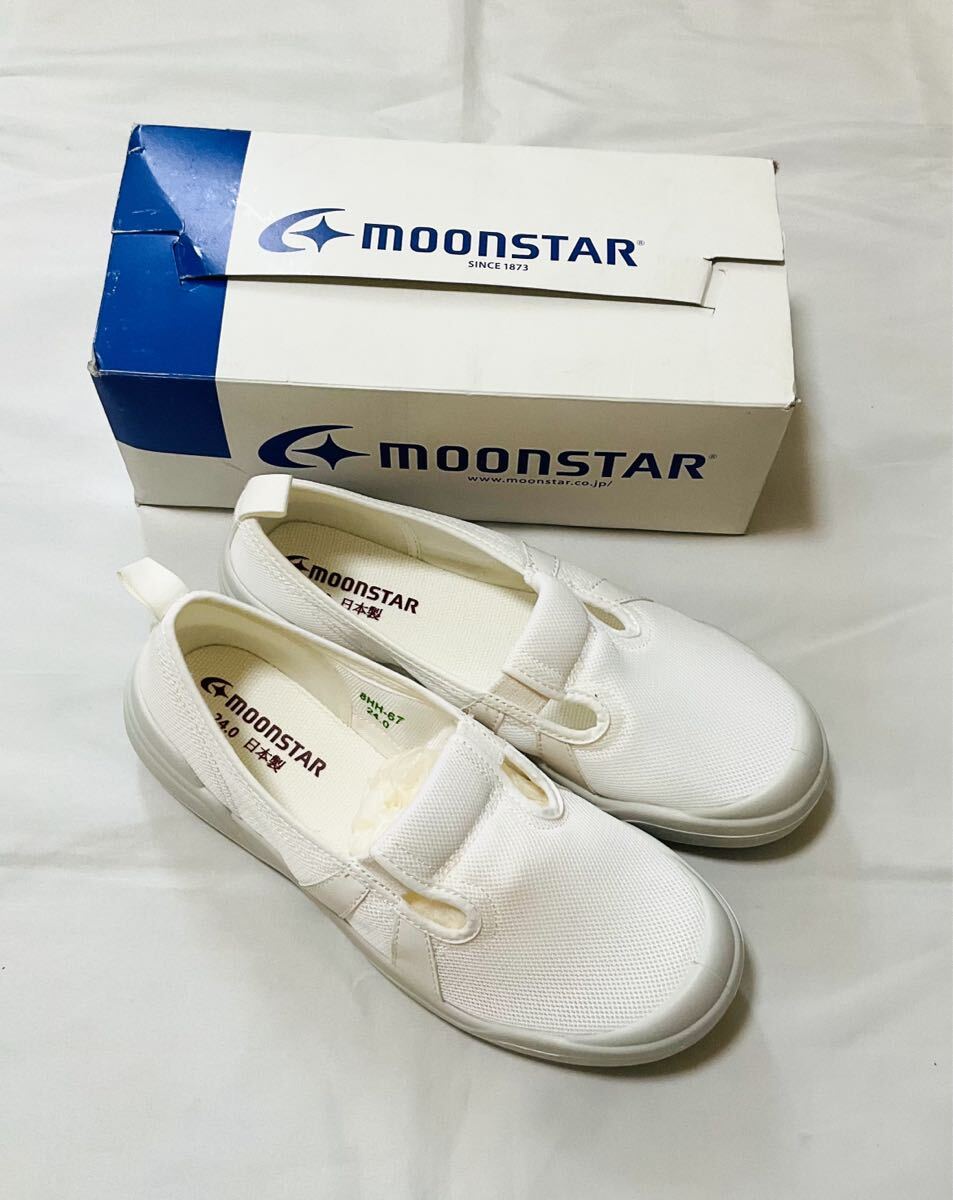 - 新品未使用品 ムーンスター 体育館シューズ スリッポン 24センチ 小中高 ホワイト moon star 靴
