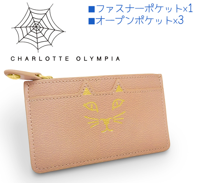 - 【未使用 超美品】 シャーロットオリンピア コインケース カードケース 小銭入れ 財布 定期 キャットフェイス レザー ピンク ベージュ ネコ