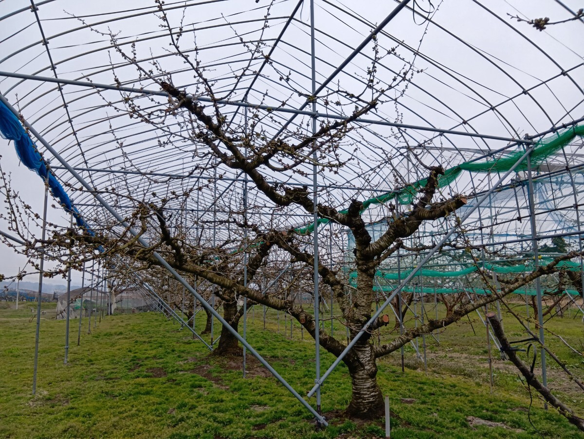 - 引取限定 サクランボ 中古 雨避けハウス 間口約7m 奥行き約49m アーチΦ22 骨組みΦ42 どぶクランプ ネット付 葡萄や農作物雨避け