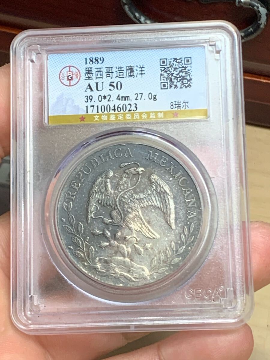 - 1889年8R メキシコ古銭銀貨 公博鑑定済みAU50 古銭銀貨1ペソ 希少珍品 壹圓 銀元 収蔵品放出