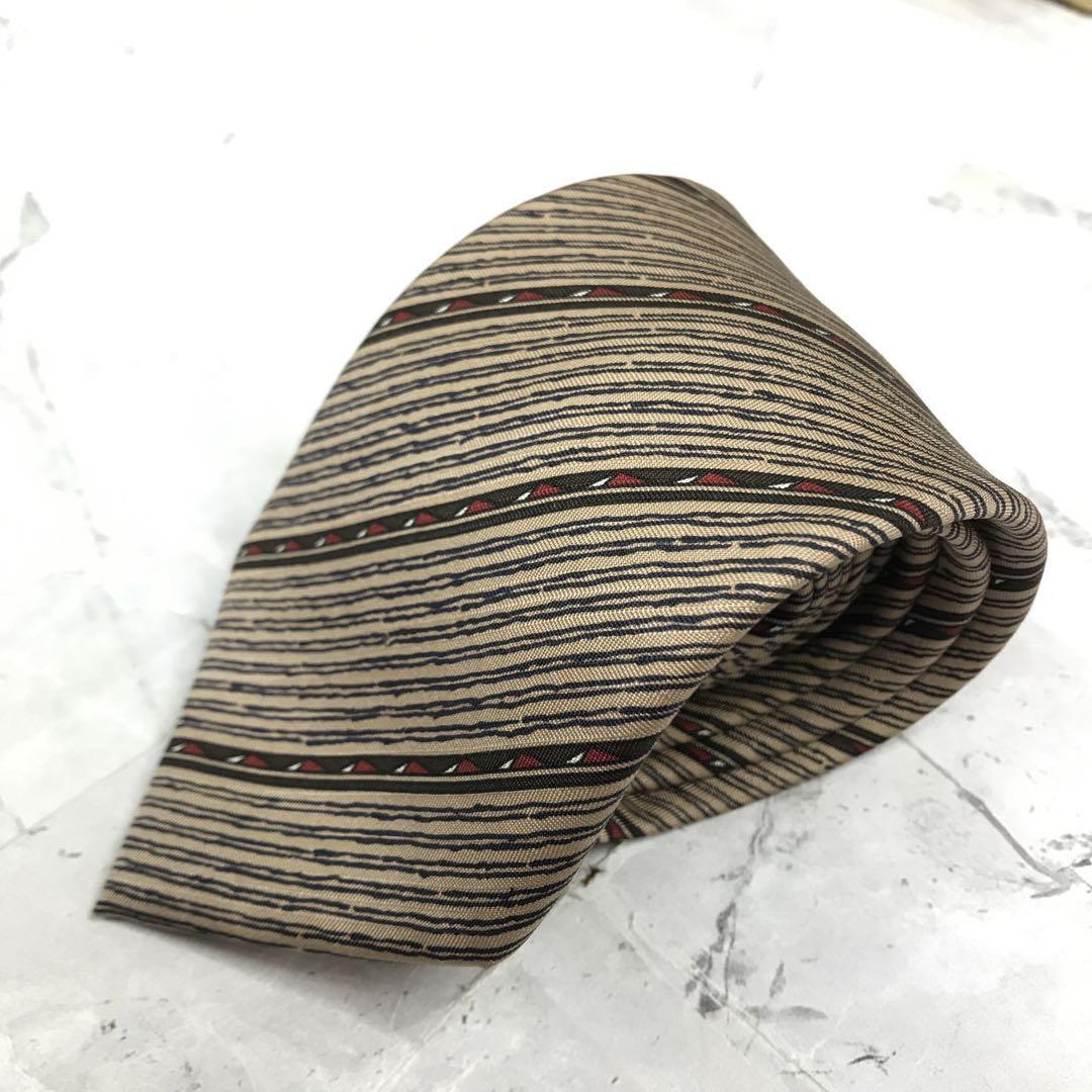 - 【美品】ピエールカルダン ネクタイ 薄い茶色 ストライプ 絹【n1853】