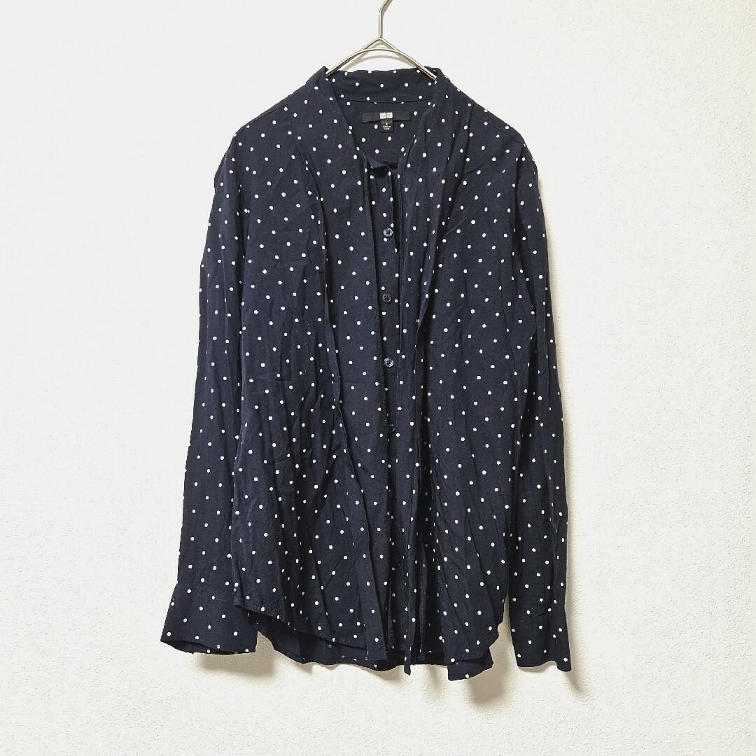 - 【UNIQLO】ユニクロ レーヨンボウタイブラウス ドット柄 ネイビー (S)