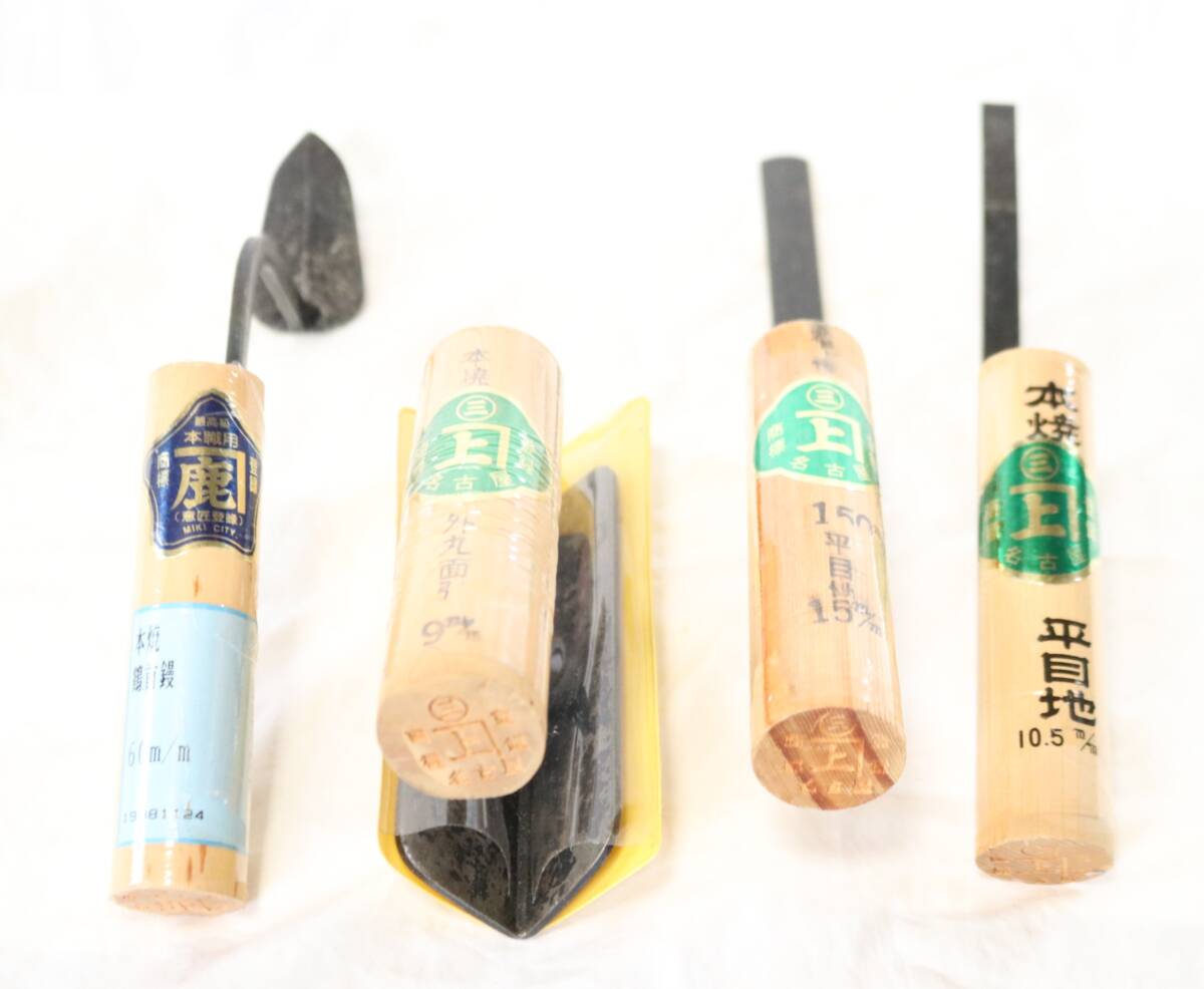 > 9mm(外丸面引鏝) 10.5mm 15mm(本焼 平目地鏝) 60mm(本焼 鶴首鏝 三木カネ鹿) 4点 まとめ 左官道具 特殊 こて コテ