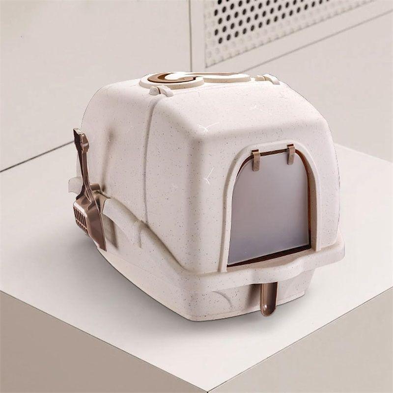 - 猫用トイレ本体 大型 フルカバー 猫トイレ 2way出入り方法 上から ふた付き 大きいサイズ ゆったり おしゃれ 猫砂が飛び散り防止 臭い防止