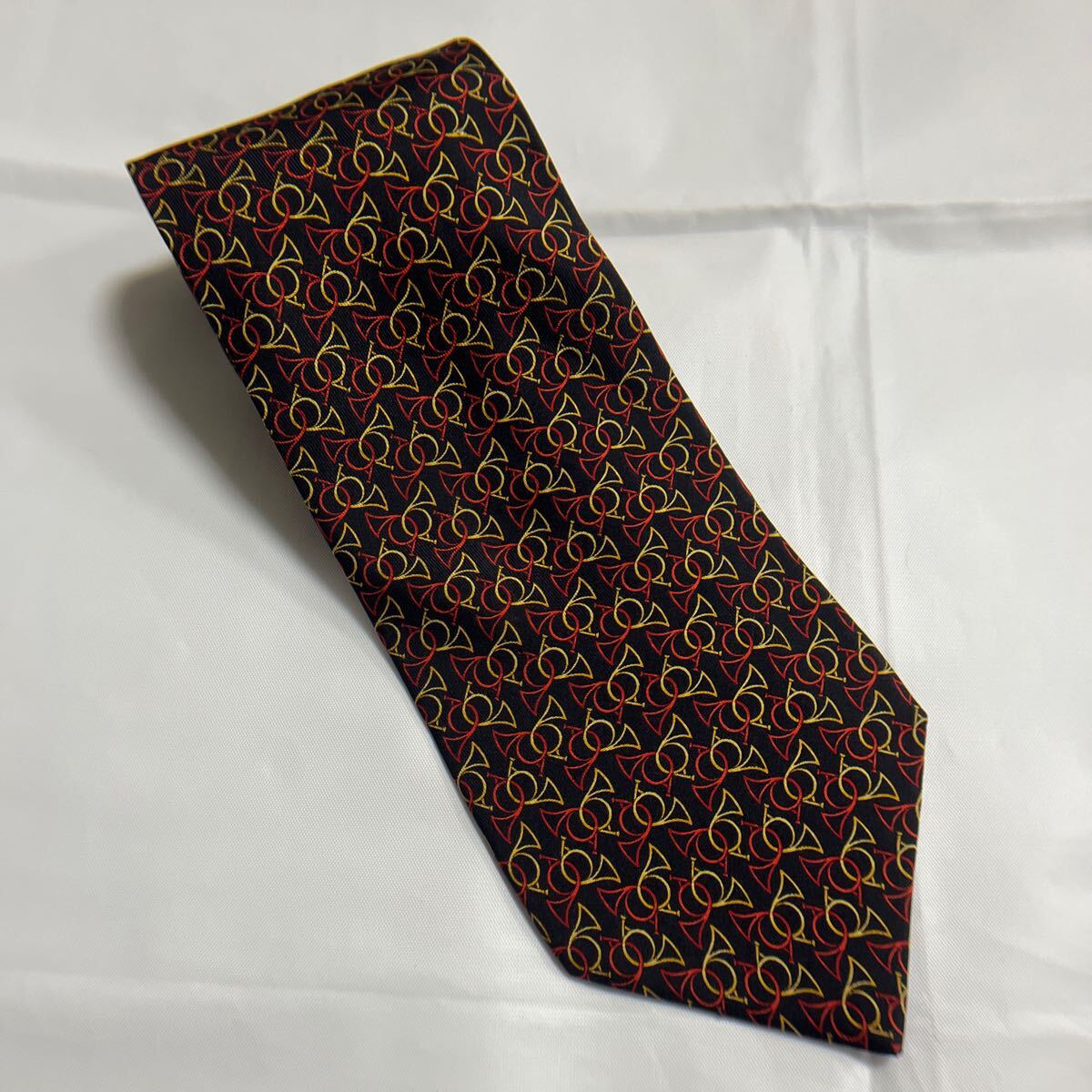 > 送料一律430円 極美品 イタリア製 Salvatore Ferragamo サルヴァトーレ・フェラガモ ネクタイ ブラック レッド イエロー 総柄 シルク100%