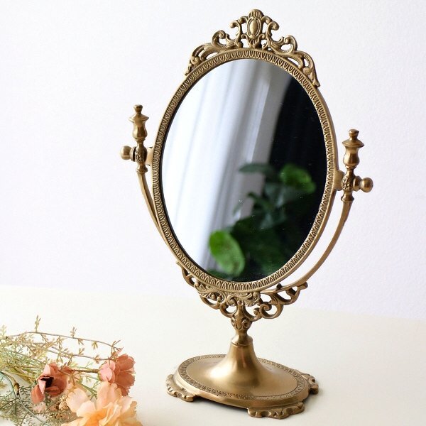 - 鏡 ミラー スタンドミラー 卓上ミラー おしゃれ かわいい オーバル 真鍮のロココ調スタンドミラー 送料無料(一部地域除く) ras4380