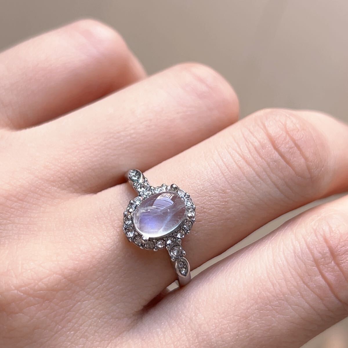 > ◇ブルームーンストーン◇指輪◇リング◇フリーサイズ◇天然石◇パワーストーン◇巾着袋付◇プレゼントに037R6411