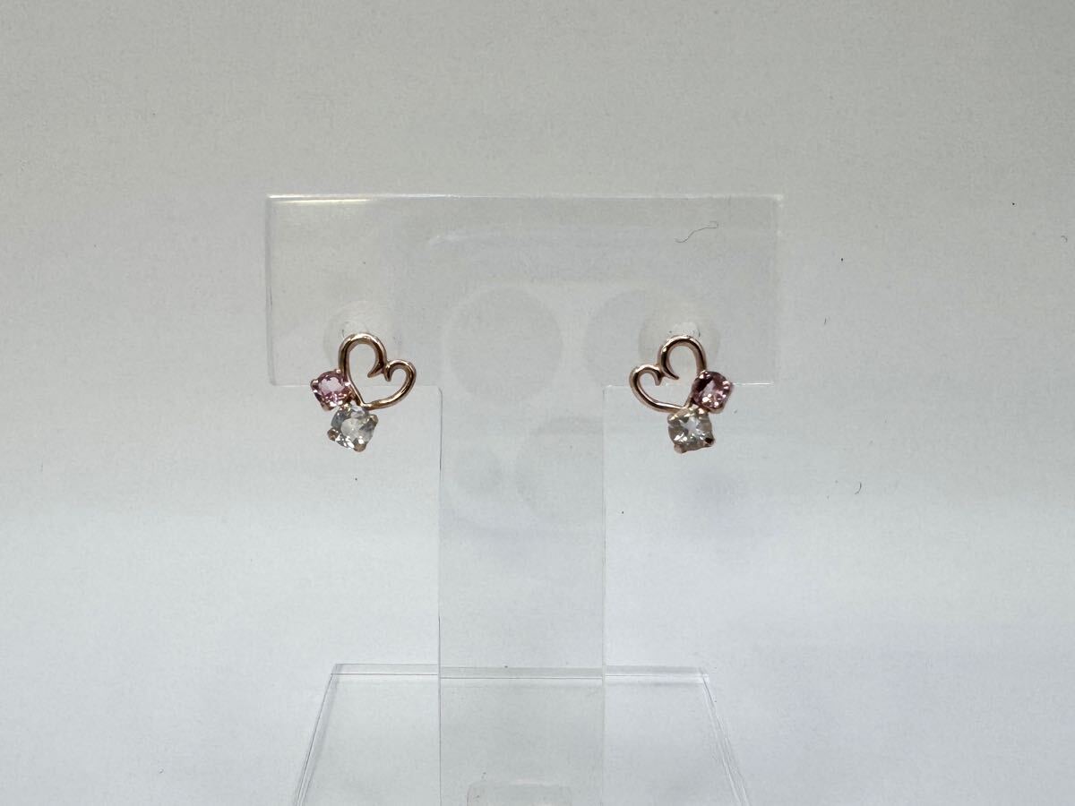 - 【質屋 尾張屋商店 東京】 ☆仕上済☆ K10PG レディースピアス アクセサリー ハート ピンク 透明石 宝石