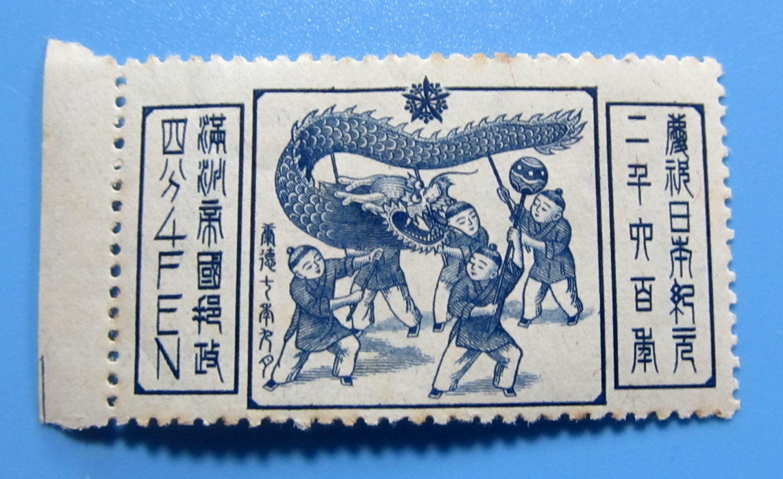 - 満州の切手★日本紀元2600年★4分 折れています 裏のり シミ 未使用