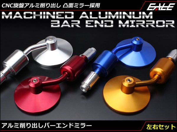 - アルミ CNC 削り出し アルマイト処理 バーエンド ミラー 左右セット ハンドル内径18mm以下に対応 レッド S-281R