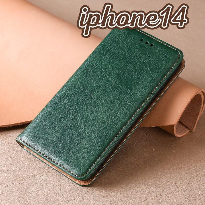 - iPhone14手帳型スマホケースマグネット付ライトグリーンクレカおしゃれレザー調シンプル