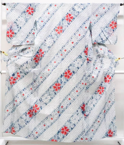- 《古美術京松》【着物】 浴衣 有松絞り 花文 身丈約160cm 裄丈約64cm r7z06-550