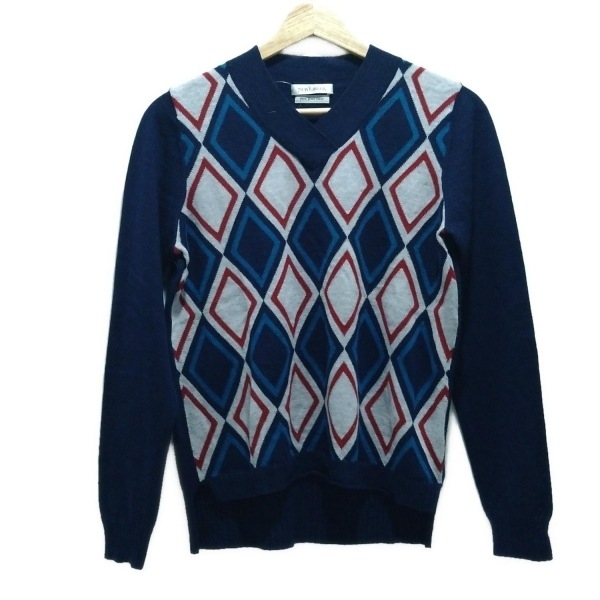 > ニューヨーカー NEW YORKER 長袖セーター/ニット サイズL - ダークネイビー×グレー×マルチ レディース Vネック トップス