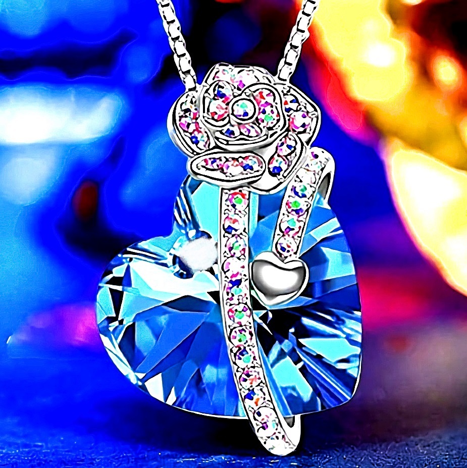 - 新品★送料無料★薔薇ハートブルートパーズ虹ダイヤプラチナ仕上 925シルバーネックレス 誕生日プレゼント旅行連休夏海ギフト国内発送