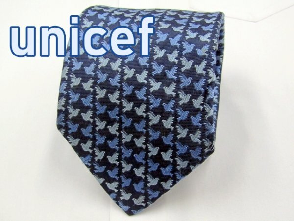 - 【ユニセフ】【鳩】 E 567 ユニセフ unicef ネクタイ 紺系 アニマル ジャガード