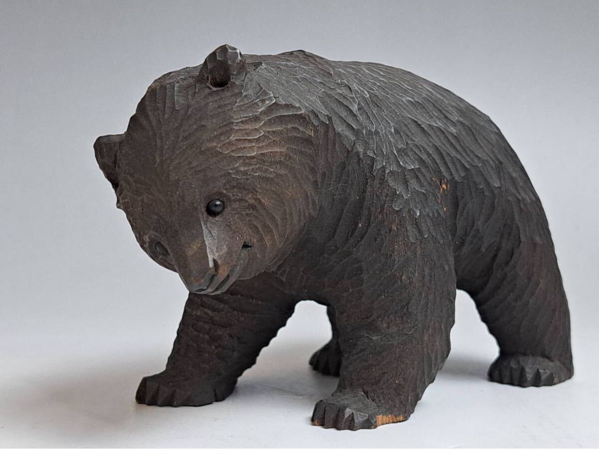- 八雲 木彫り作家 若山万之助(昇雲 )木彫り熊 ガラス眼 毛彫り 高さ約7.3cm 小振りで可愛い作品です