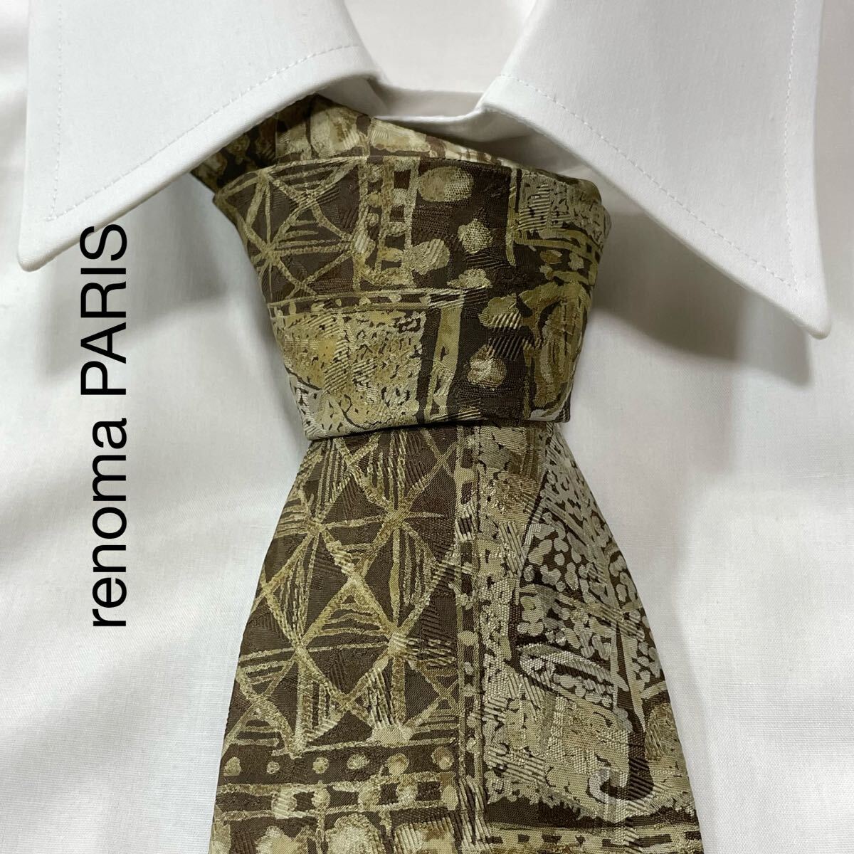 - renoma PARIS レノマパリス アート パターン柄 シルク ネクタイ ブラウン TG1758