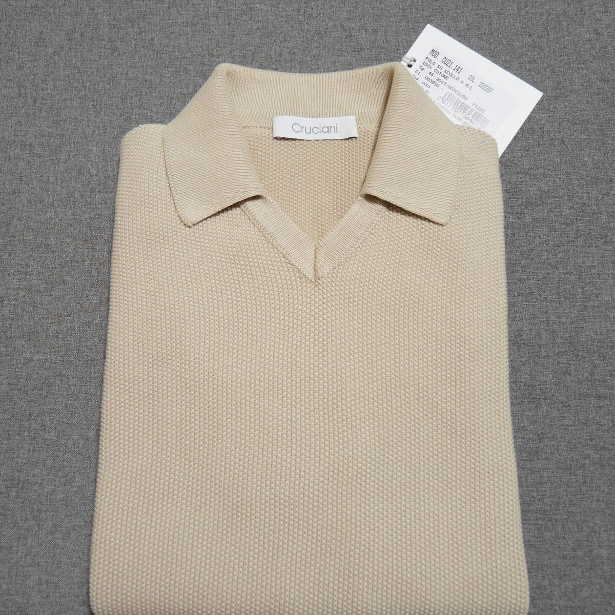 > Cruciani ニット ポロシャツ セーター 44 クルチアーニ 最高級 鹿の子生地 ハイゲージ ライトベージュ 定価7.5万 イタリア