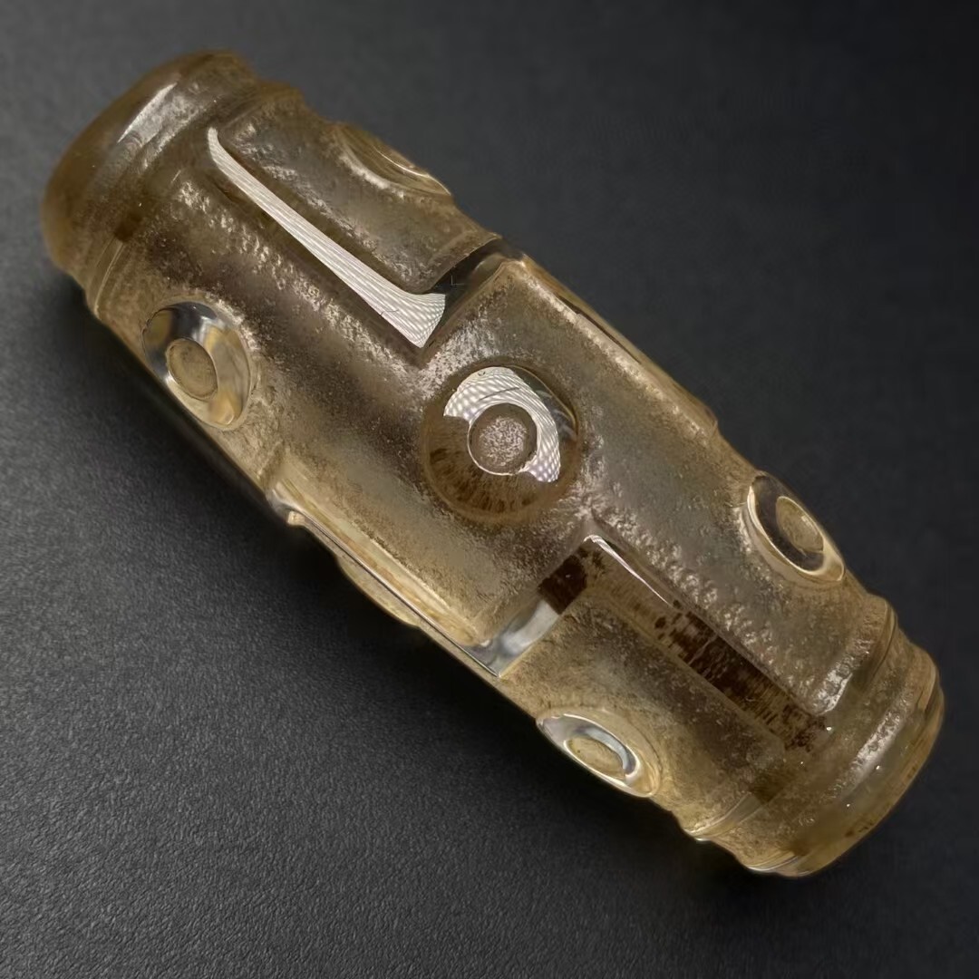 > 秘藏 清代 チベットの老天珠 高油老料 【 老料水晶【九眼天珠】 】 極上品 包漿渾厚 裝身具 骨董品 極細工 賞物 置物 風水 開運 辟邪 5.29