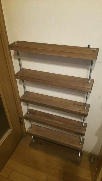 - 大工さんの手作り★オーダー可★ヴィンテージ風★壁かけシェルフ★アイアンシェルフ★男前インテリア★インダストリアル★フィギア飾り棚★
