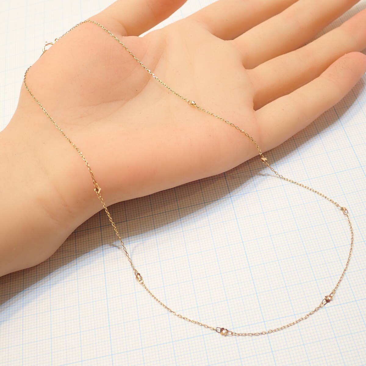 - ■K18カット小豆デザインチェーンネックレス 1.1g 39cm■昭和レトロ アンティーク■中古磨き仕上げ■