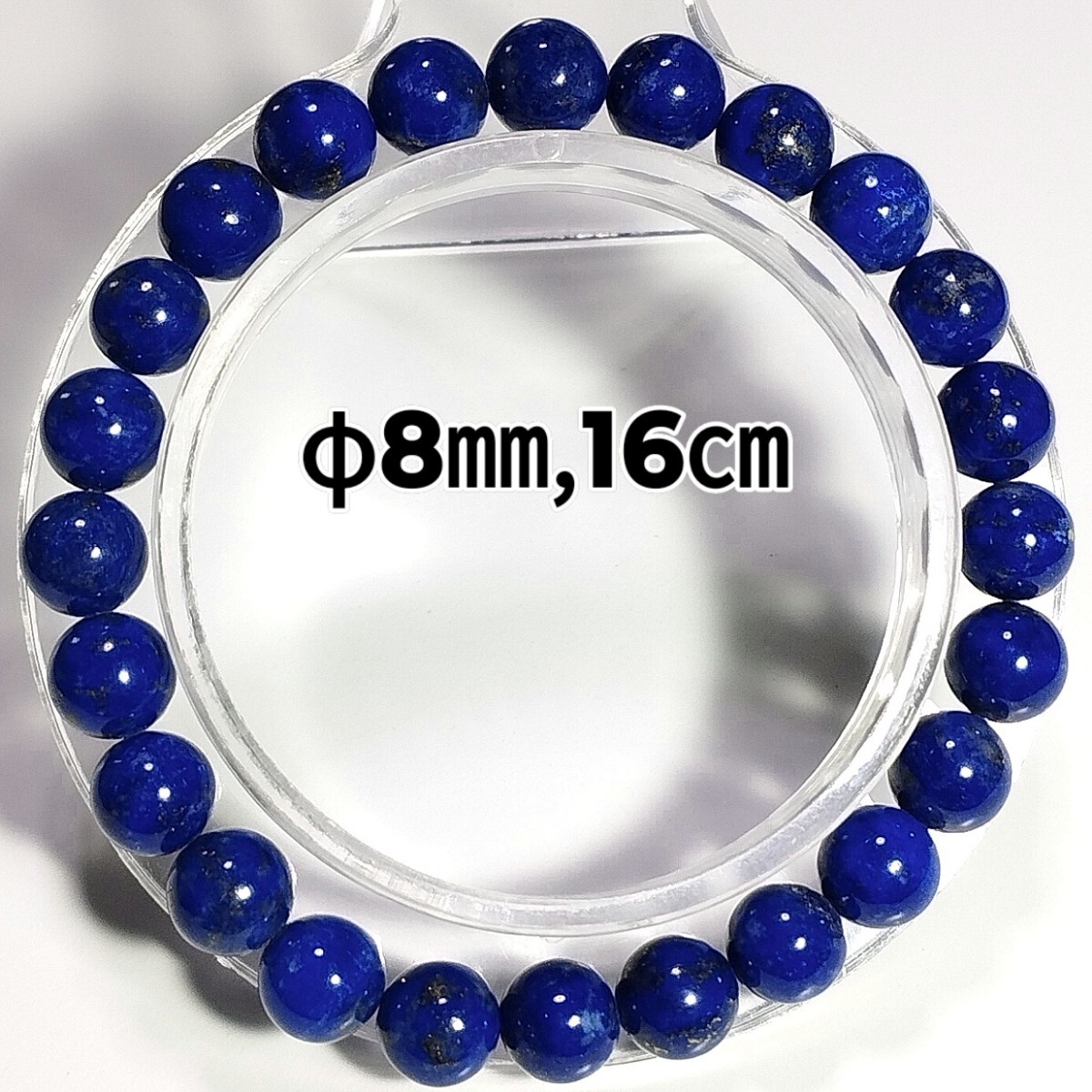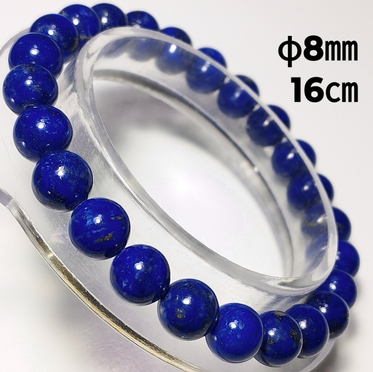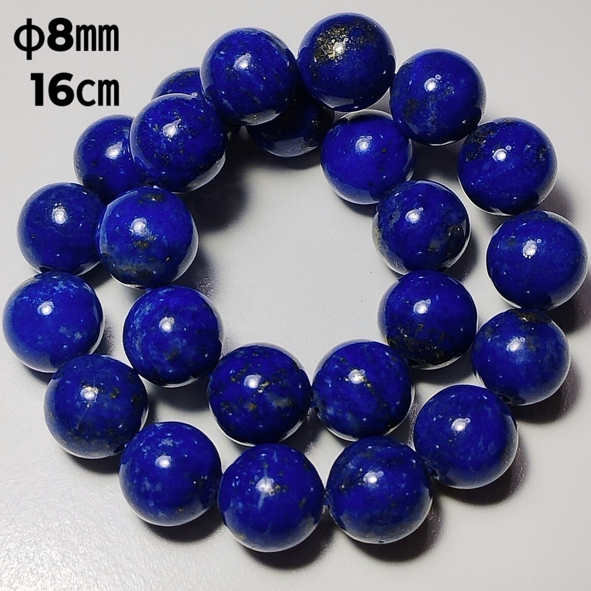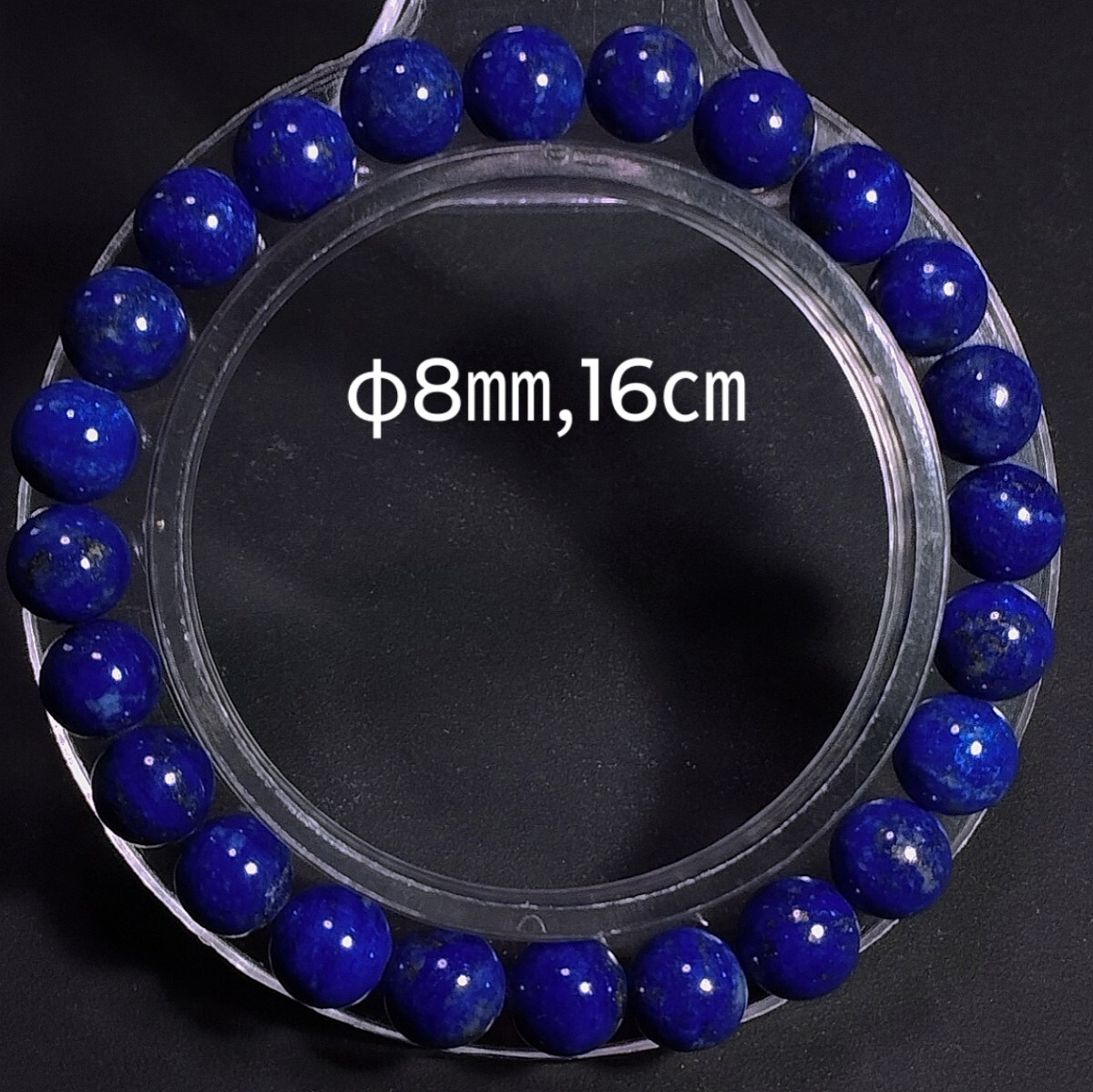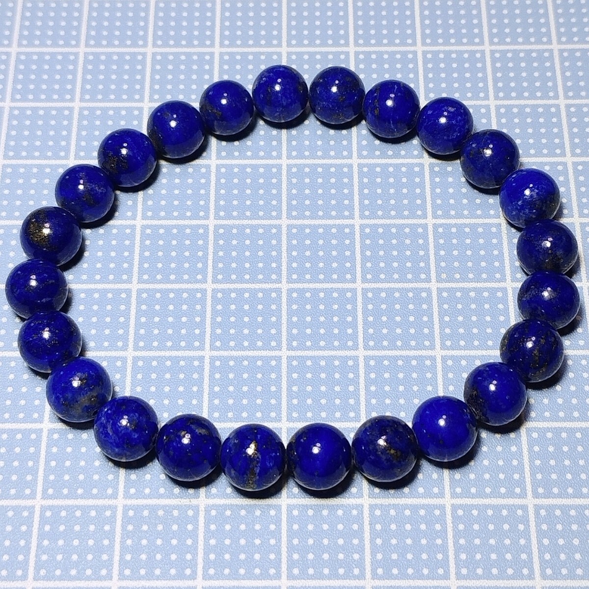 - 高品質 無着色 濃紺 ラピスラズリ ブレスレット パイライト 8㎜ 16㎝