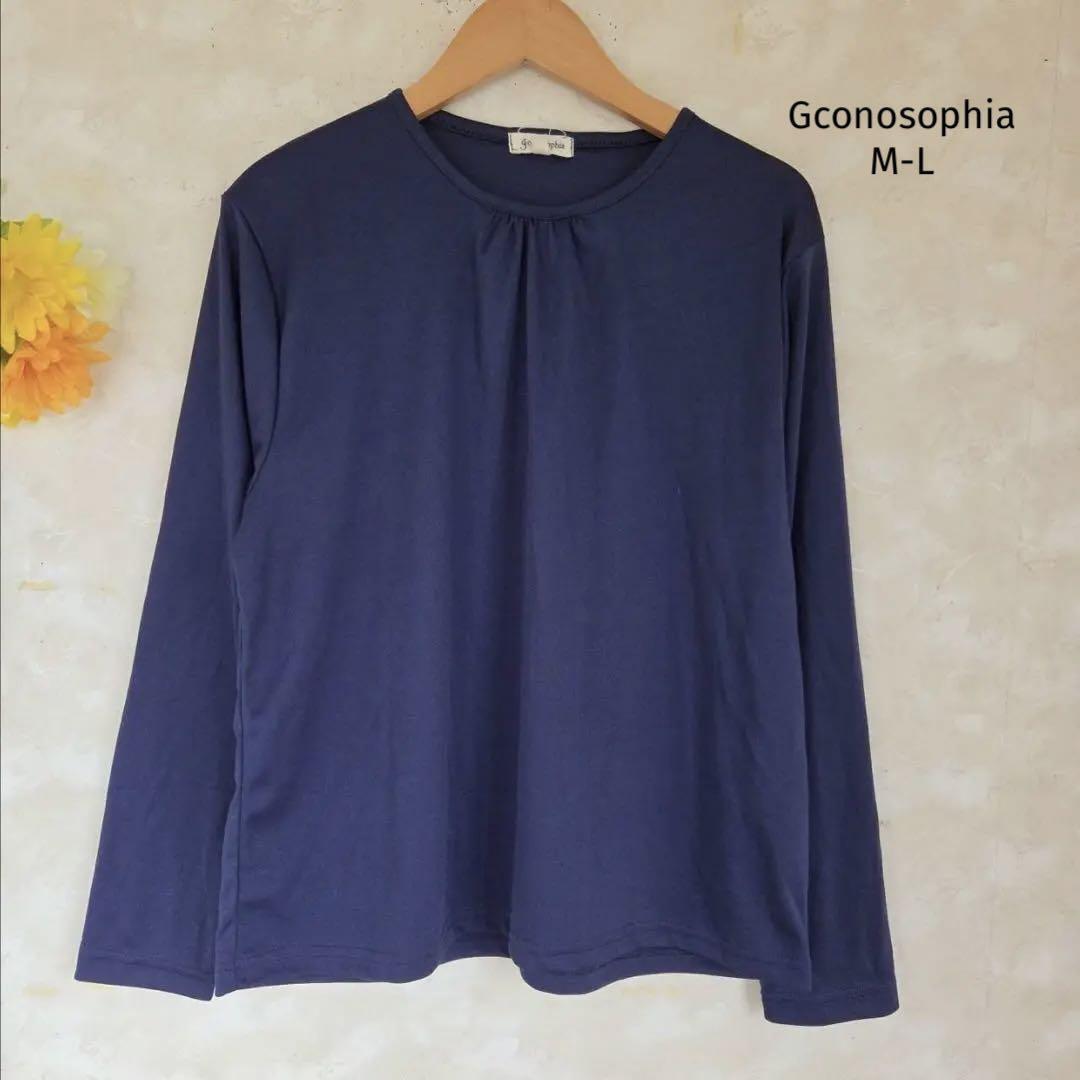 - Gconosophia カットソー【M-L】長袖 ネイビー 紺 タック 無地