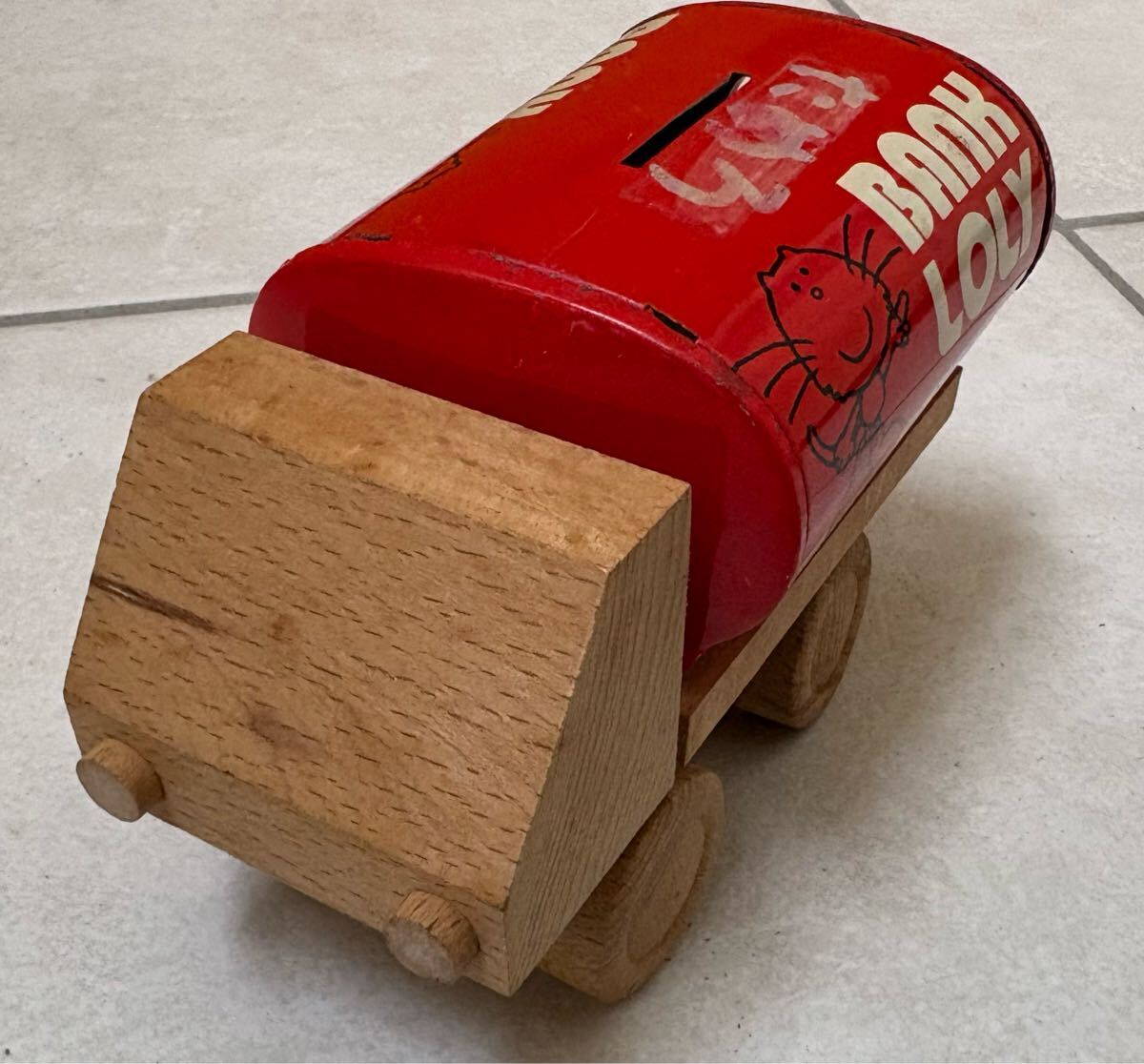 - 当時物 レア SANRIO サンリオ バンクローリー 木製 サンフランシスコ ブリキ 貯金箱