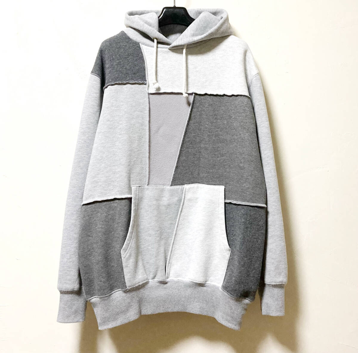 - antiqua アンティカ TREE CAFE プルオーバーパーカー パッチワーク GRY