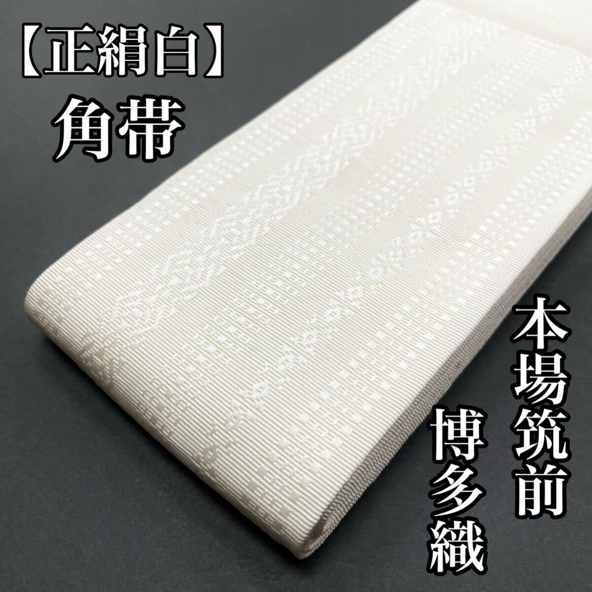 - 白色 正絹角帯 本場筑前博多織 男性用 男用 男 絹 正絹 本筑 博多帯 献上 お洒落用 モノトーン 浴衣用 角帯 献上柄 白