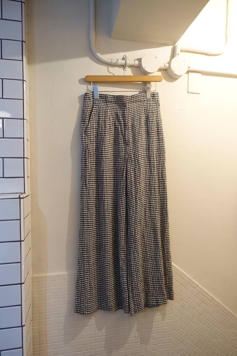 - ◎THIRD MAGAZINE × mikomori サードマガジン チェック フレア パンツ 22SS 定価31900円 リネン シルク混 サイズ2 A0821FP 225