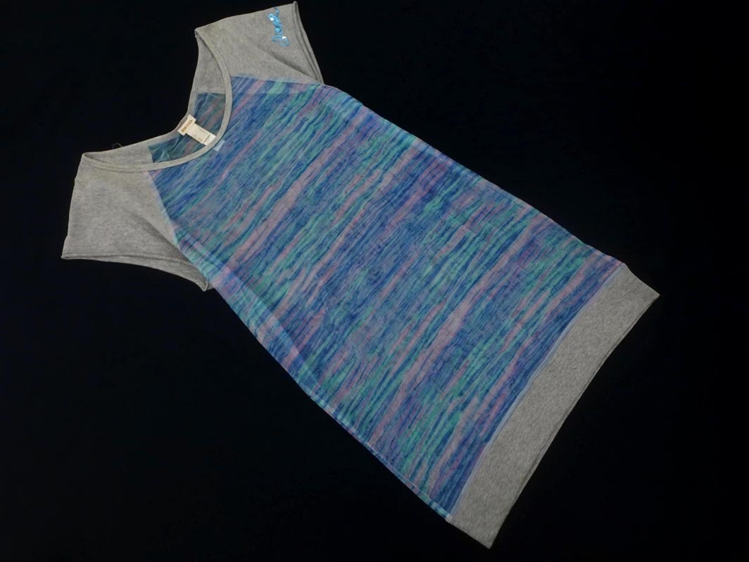 - ネコポスOK DIESEL ディーゼル チュール 切替 ラグラン Tシャツ sizeS/グレーx青 ■◆ ☆ ffa9 レディース