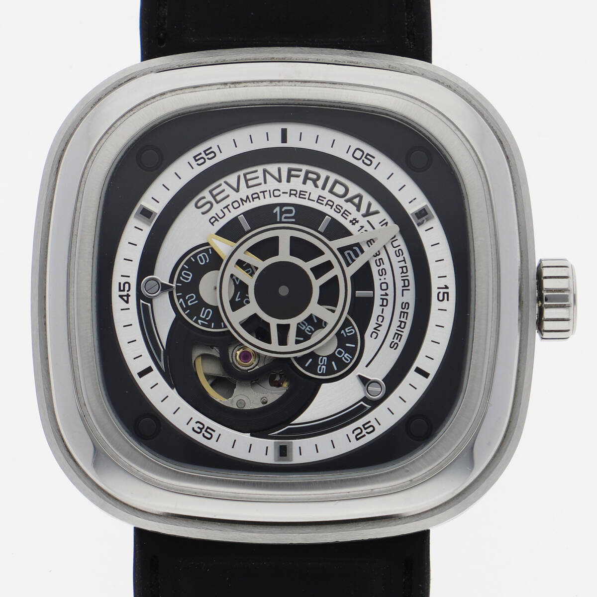 > SEVEN FRIDAY P1B/01 Pシリーズ シルバー/ブラックダイヤル SS/ラバー 自動巻き メンズ【131088】
