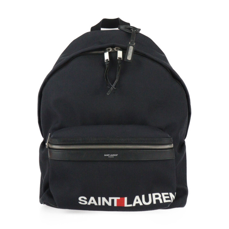 > 美品 サンローランパリ バックパック リュック・デイパック 465448 キャンバス レザー ブラック シルバー金具【本物保証】