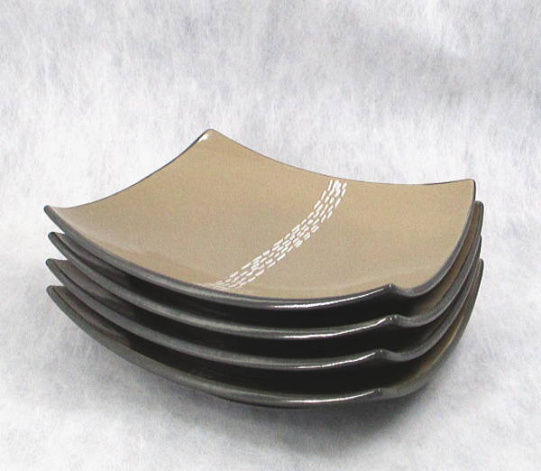 - ベージュ角四方上り皿 22cm 4枚 せせらぎのきらめき サラダ・フルーツ・刺身盛付