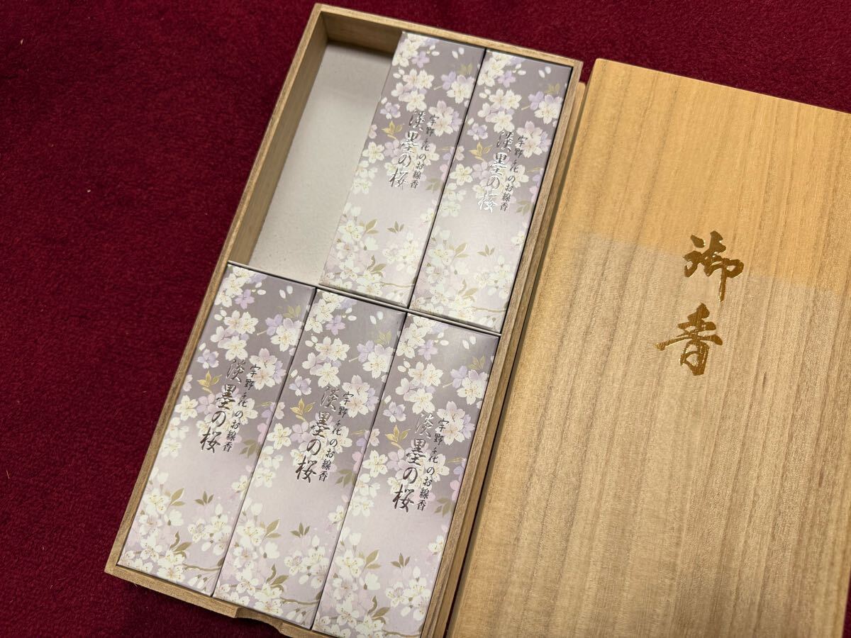 - 線香 宇野千代のお線香 淡墨の桜 桐箱 短寸5箱入 少煙 日本香堂 微煙
