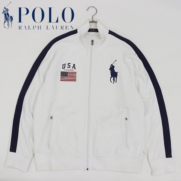 > 国内正規品◆POLO RALPH LAUREN ポロ ラルフローレン ビッグポニー刺繍 星条旗 裏起毛 ジップ ジャケット 白 ホワイト×ネイビー XL