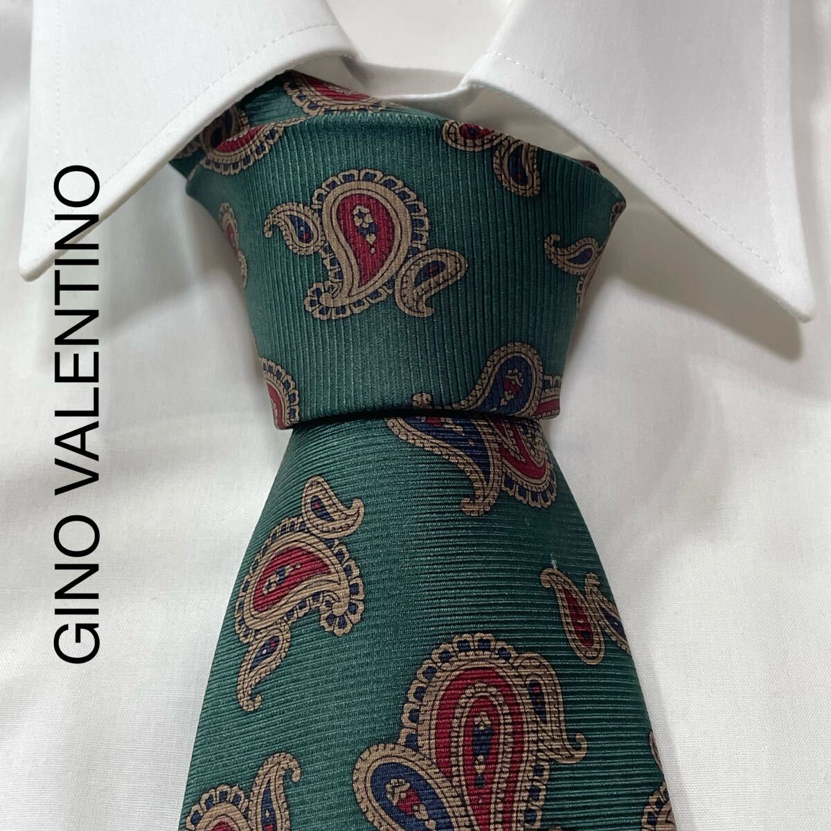 - GINO VALENTINO ペイズリー シルク ネクタイ グリーン TG1991