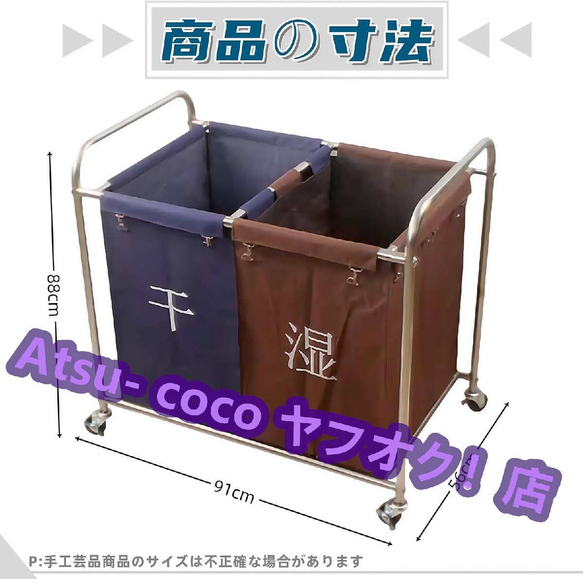 - リネンカート 清掃カート サービスカート ランドリー リネンワゴン 約350L業務用・家庭用ランドリーワゴン91奥行きx56幅x88高さcm負荷200kg