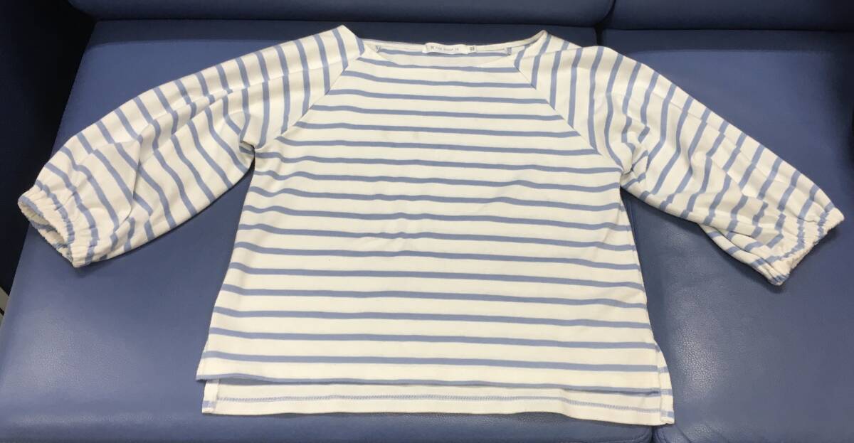 - 中古 THE SHOP TK 七分袖ボリュームスリーブプルオーバー ホワイト系(500)ライトブルー 14(140cm) 定価1650円